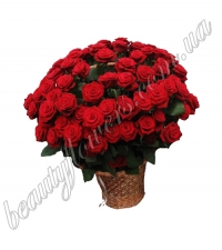 Состав корзины цветов: Состав корзины цветов: роза красная (77 шт.), корзина.
