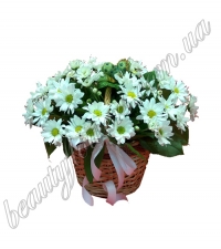 Состав корзины цветов: Состав корзины цветов: хризантема белая (11 вет.), флористический декор, декоративная зелень, корзин