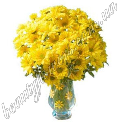 Состав: Состав букета цветов: желтые ромашковые хризантемы (7вет.), оформлены лентой.
