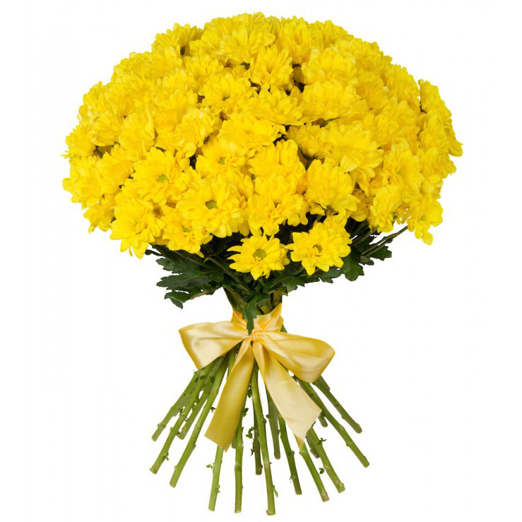 Состав: 15 желтых хризантем, лента