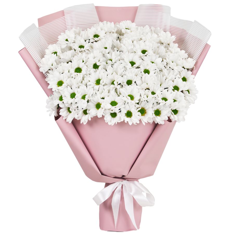 Состав: 11 белых ромашковидных хризантем, премиум оформление