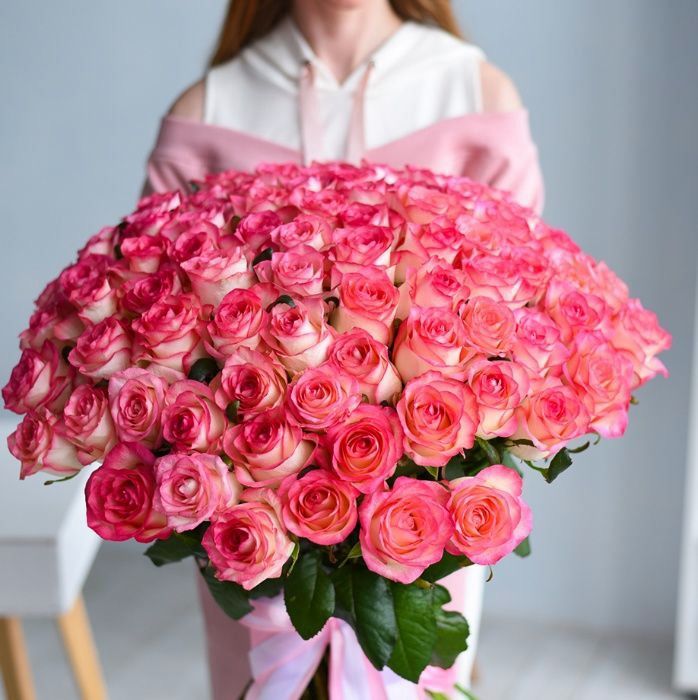 Ароматный букет из 101 бело-розовой розы сорта Джумилия покорит любое сердце. Подарив такой букет своей избраннице, и не важно, девушка это, которую нужно каждый день удивлять и завоёвывать или любимая супруга - она будет на 7м небе от счастья. Также такой букет можно подарить любимой маме или сестре, или же на юбилей, свадьбу или годовщину отношений. Нежные бутоны расскажут о трепетный чувствах, любви и заботе, которые Вы испытываете к ней. Любая представительница женского пола оценит данный подарок, который Вы можете заказать уже сегодня с доставкой по Запорожью.